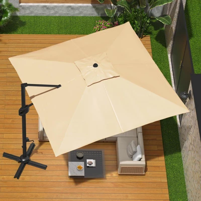 10ftx10ft Cantilever Patio Umbrella with Base,umbrella outdoor patio,360 Rotation outdoor umbrella with Stand for Deck,Pool,Backyard