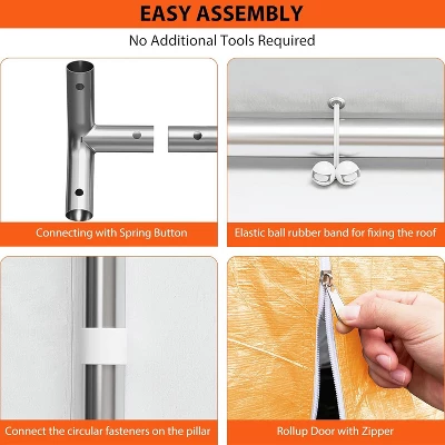Crafted with high-quality PE car cover material, this non-adjustable car shelter is built to withstand sun, rain, snow, and wind, providing reliable protection for your car, truck, or SUV. The mesh window covers add an extra layer of protection against insects and pests, making it ideal for outdoor use.