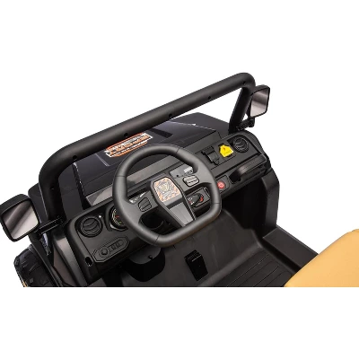 This 24V ride-on truck combines four 35W motors and a 24V 7AH battery for lasting power, conquering grass, gravel, and bumpy paths with six non-slip tires and spring shocks. In ourelectric kids car,kids enjoy off-road fun , exploring outdoors freely.The one-touch electric dump bed holds toys, sand, or pretend cargo, activating with a button to simulate real construction—perfect for sparking creativity during role-play.The dashboard features a start button, Bluetooth music, realistic horns, headlights, and high/low speeds, letting kids customize their drive.Parents can switch to 2.4G remote control for safety, while kids gain independence with pedal steering.A 5-point harness and ASTM certification ensure security, while dual seats allow shared adventures.Included with a sandbox shovel, this electric Car for Kids —ideal for birthdays or holidays.Its durable design grows with kids, blending excitement, safety, and learning.Ready to fuel imagination, it’s the great gift for endless outdoor thrills.