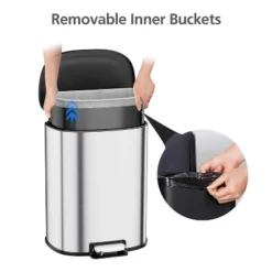 Stainless Steel Kitchen Trash Can 13 Gal, Hand Free Garbage Can With Inner Bucket & Soft Close Lid