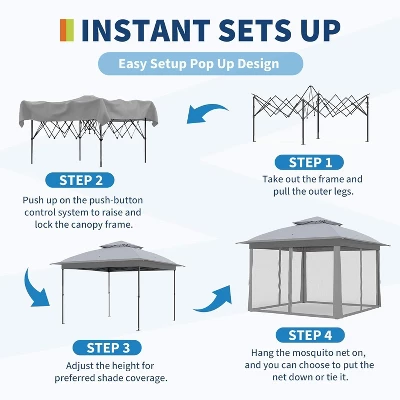 11×11 Pop Up Instant Gazebo Tent for Backyard, Pop Up Gazebo With Mosquito Netting, Outdoor Canopy Gazebos Waterproof With Portable Carrying Bag