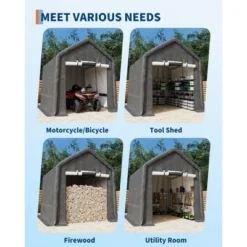 Outdoor Storage Shed 7×12 FT Carport With Roll-Up Zipper Door & Window, Waterproof & UV Resistant Portable Garage For Motorcycle, Bike, And Tools
